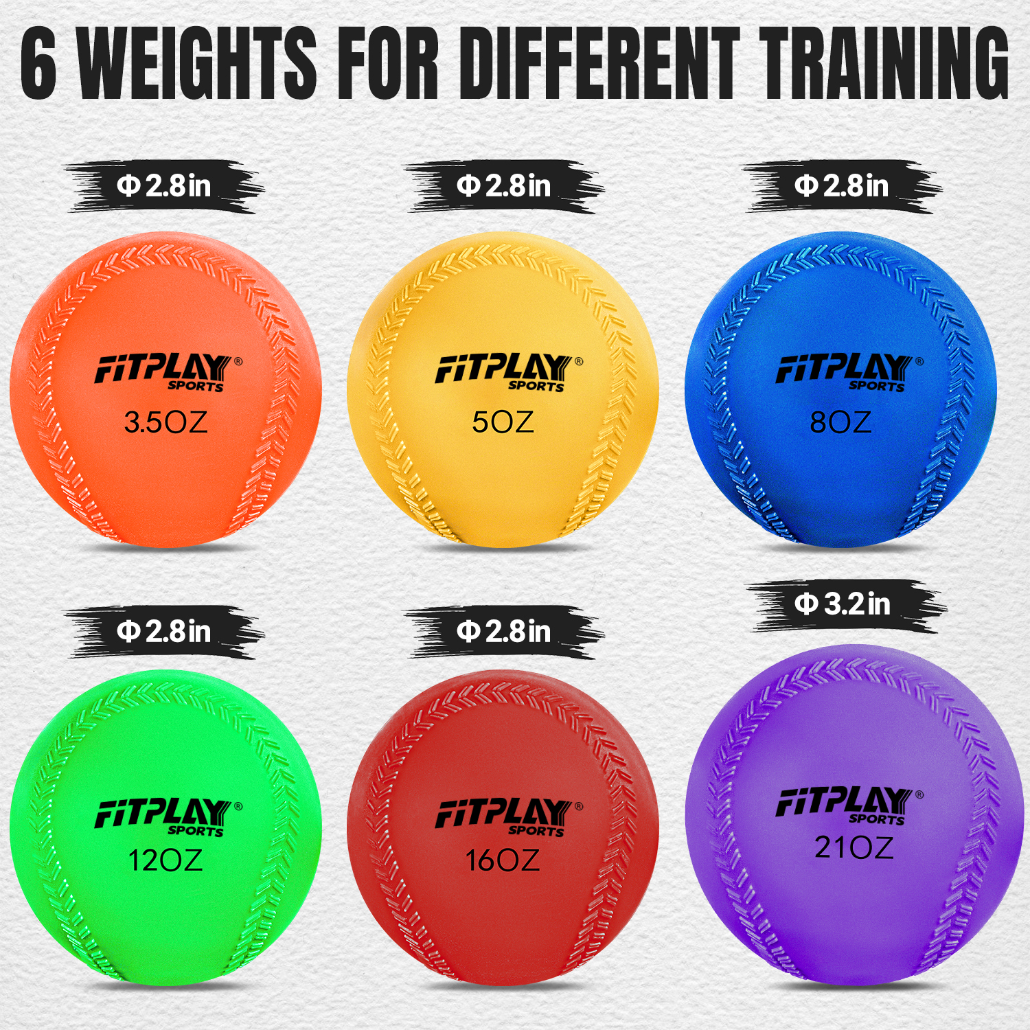 Includes 6 weighted balls from 3.5 to 21 oz with portable mesh carry bag
