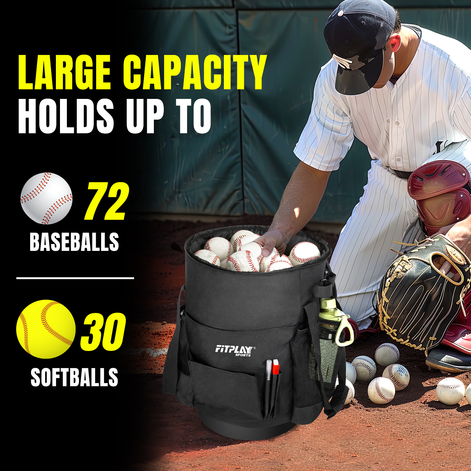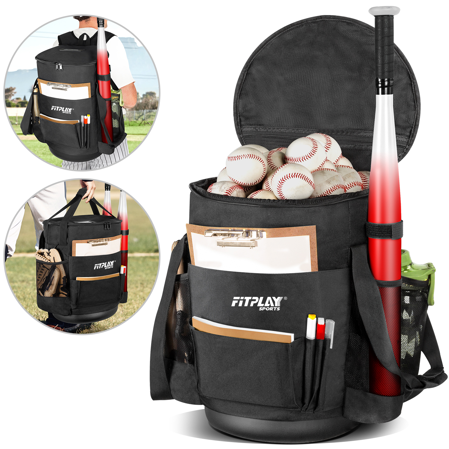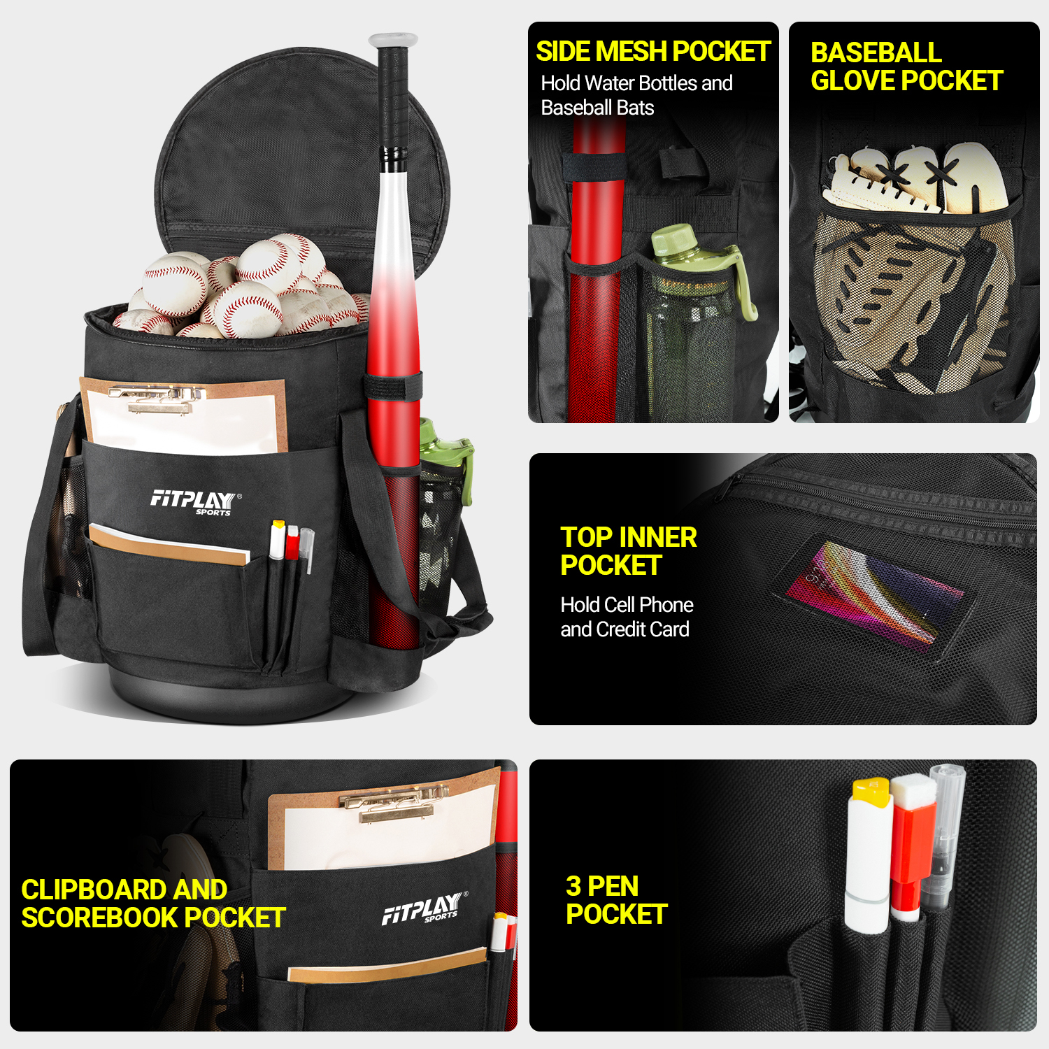 Multiple pockets with 10.6"×18" capacity holding up to 6 dozen baseballs or 3 dozen softballs
