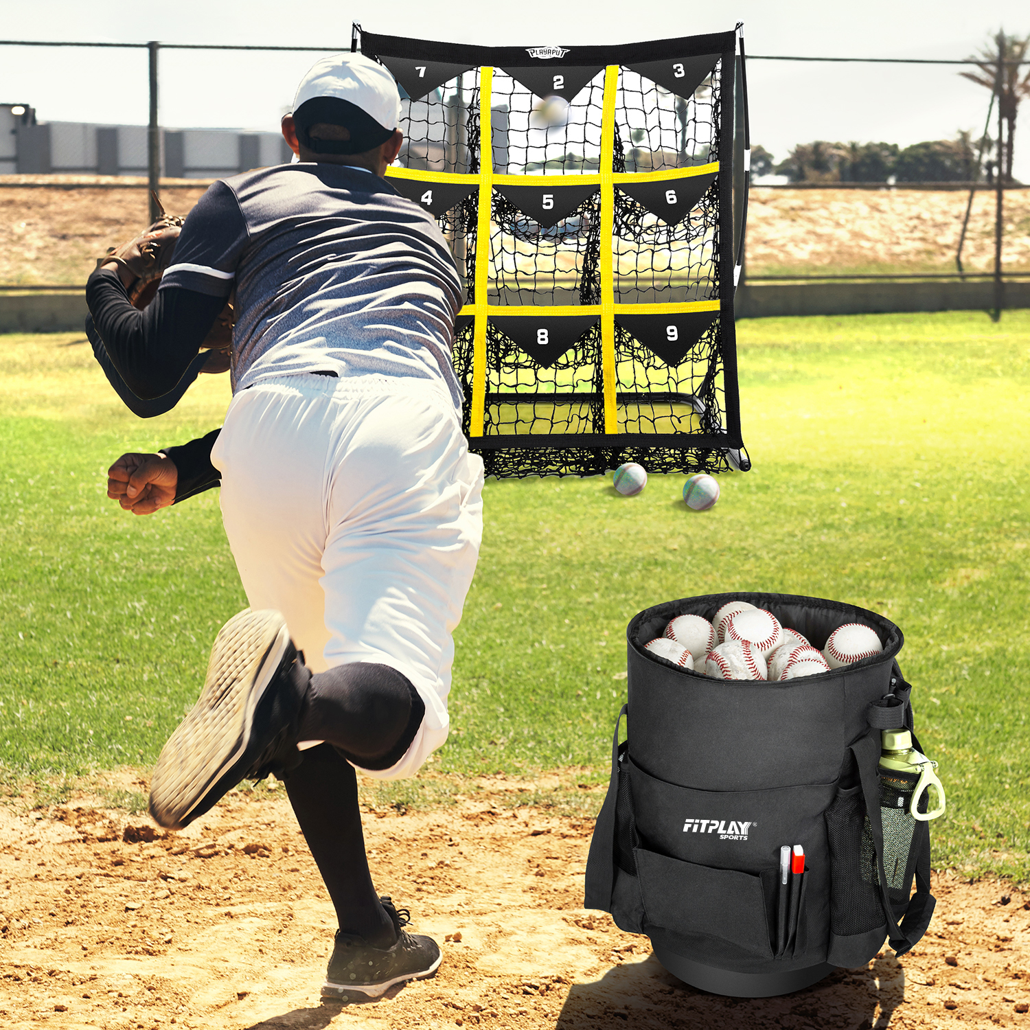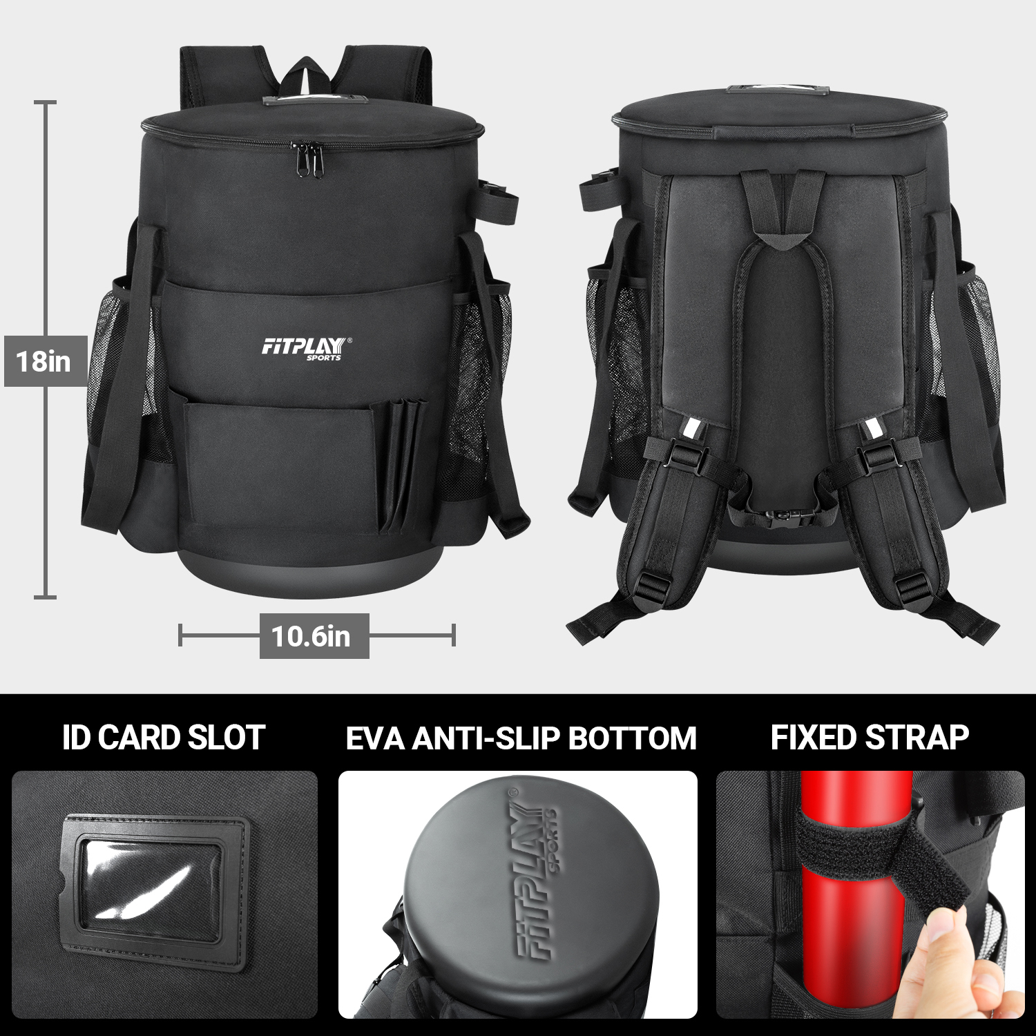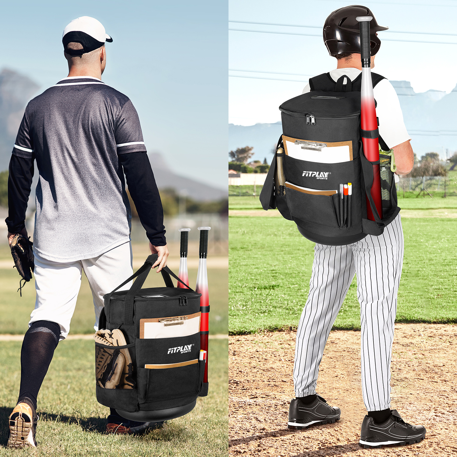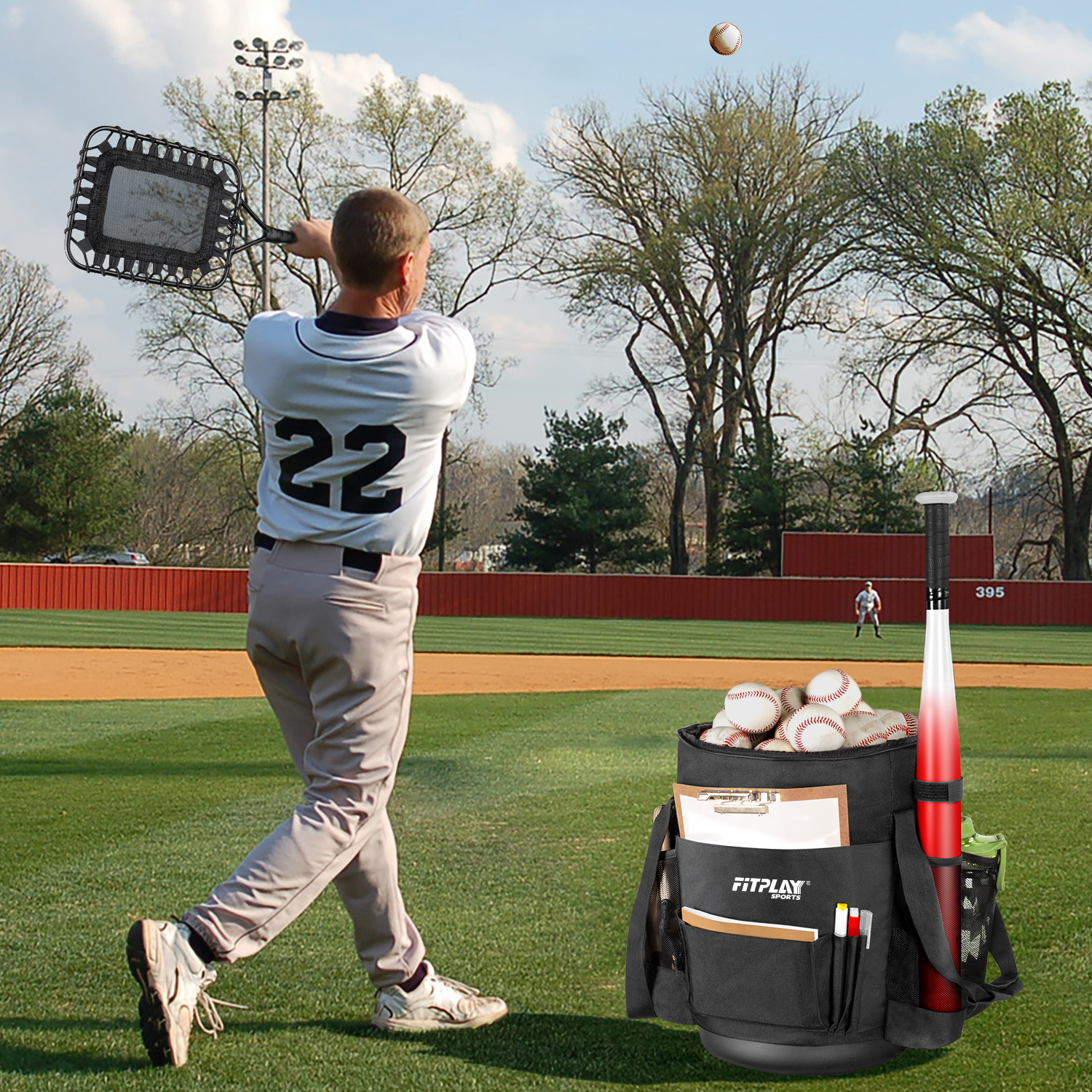 Multiple pockets with 10.6"×18" capacity holding up to 6 dozen baseballs or 3 dozen softballs