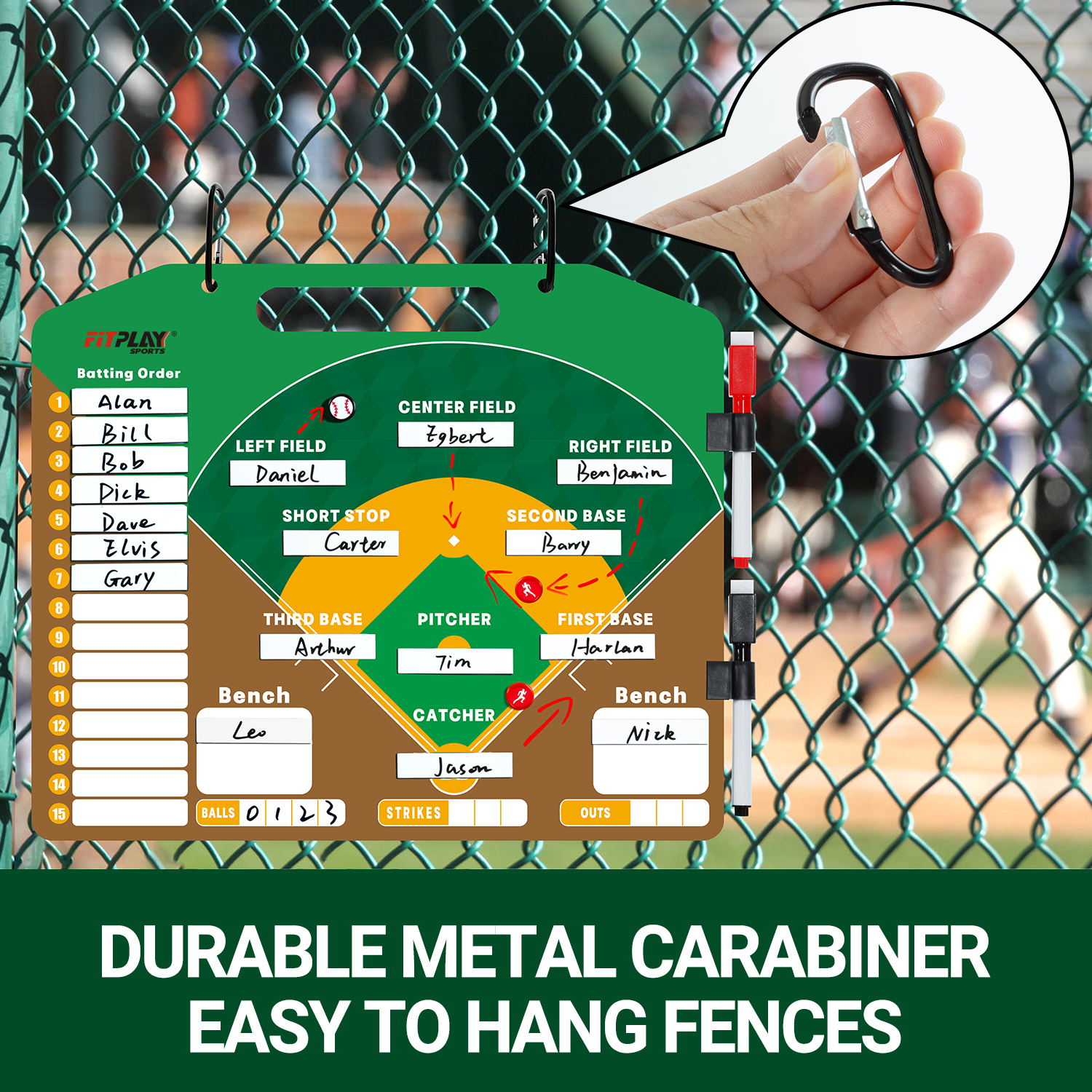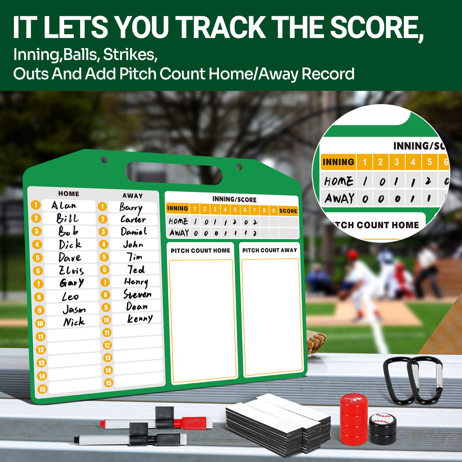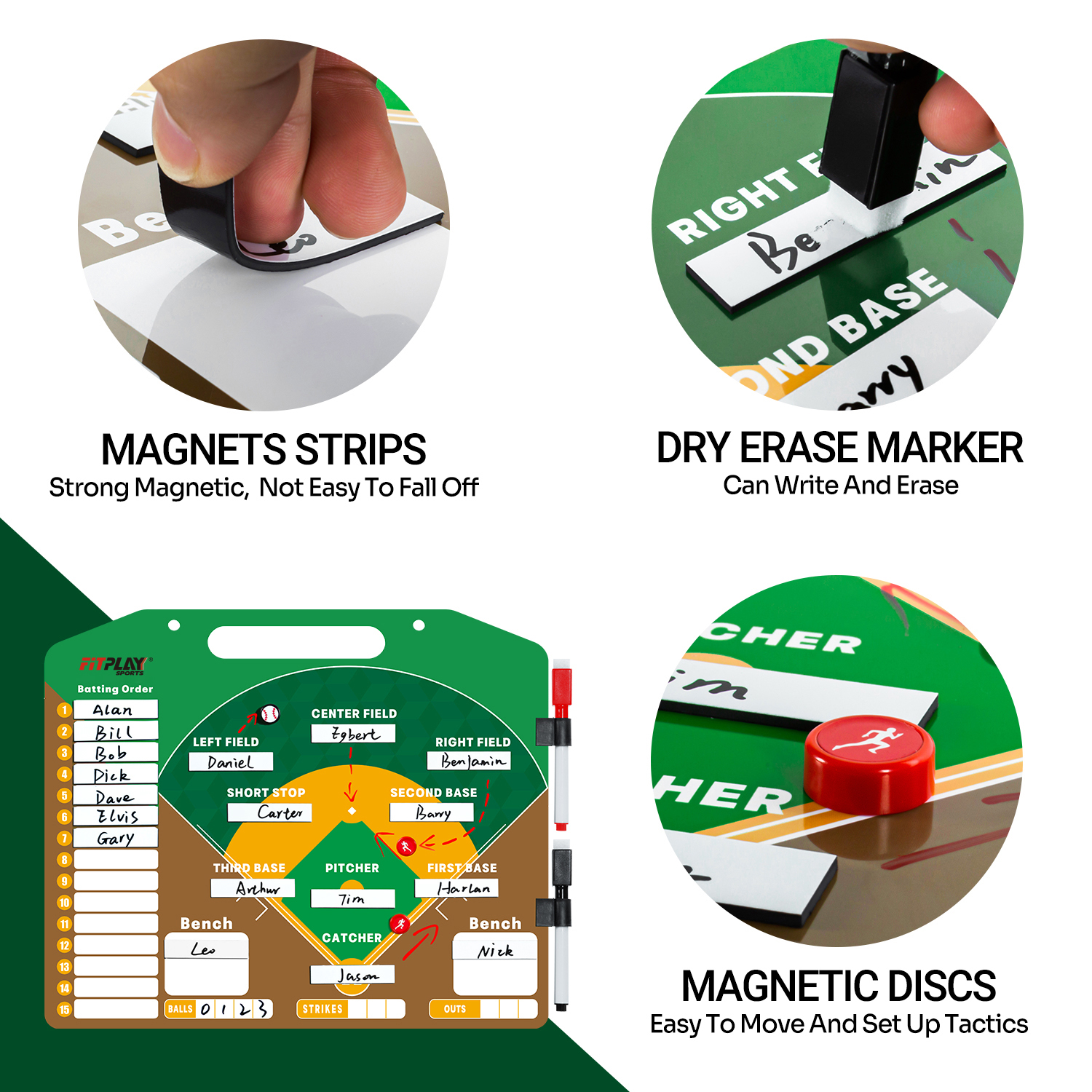 Large 14×12 inch magnetic baseball lineup board with 30 name magnets.