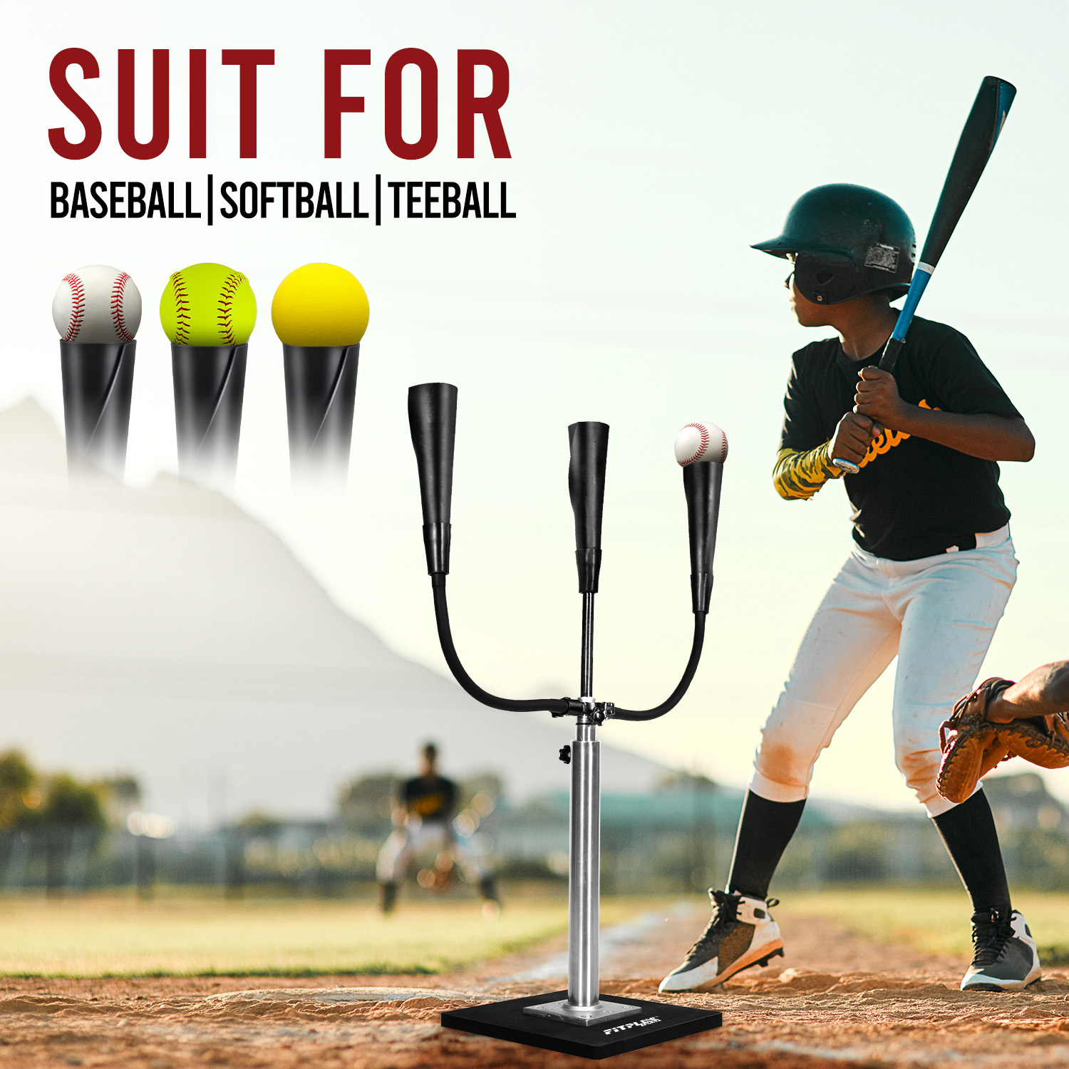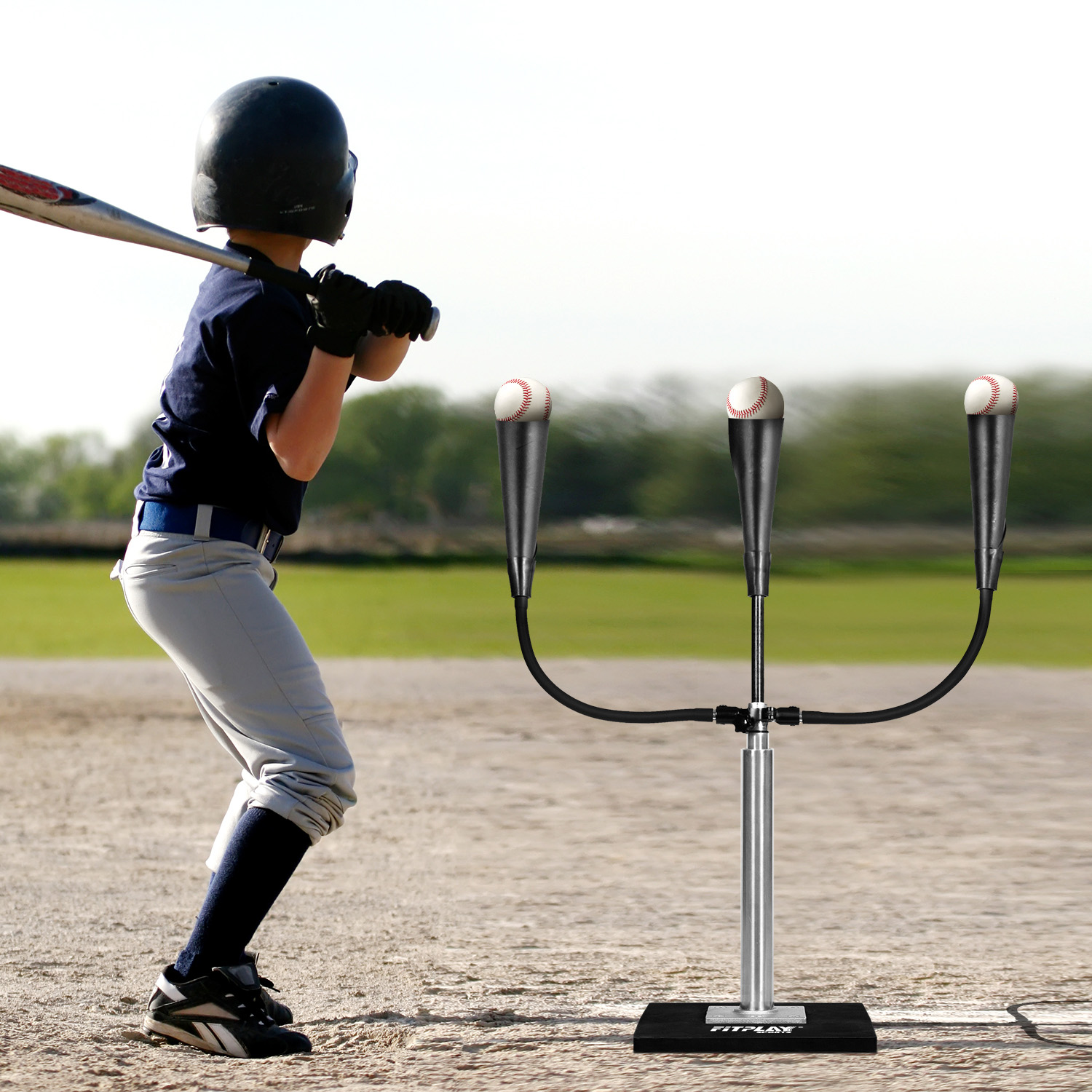 360° rotating soft tube swing arm simulates pitches and converts to pro batting tee