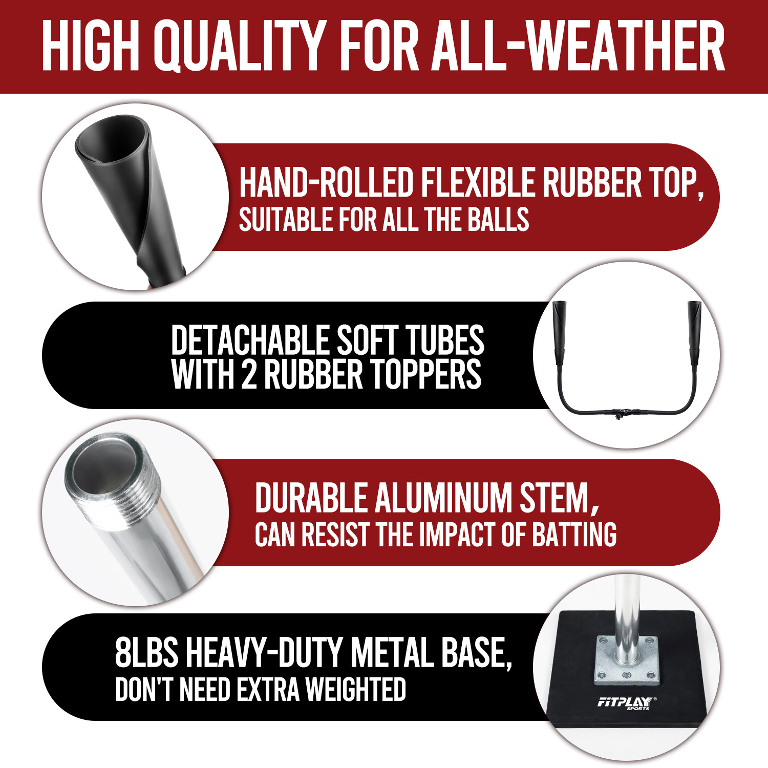 Heavy-duty 8 lbs metal base and durable rubber top ensure stability and better ball contact