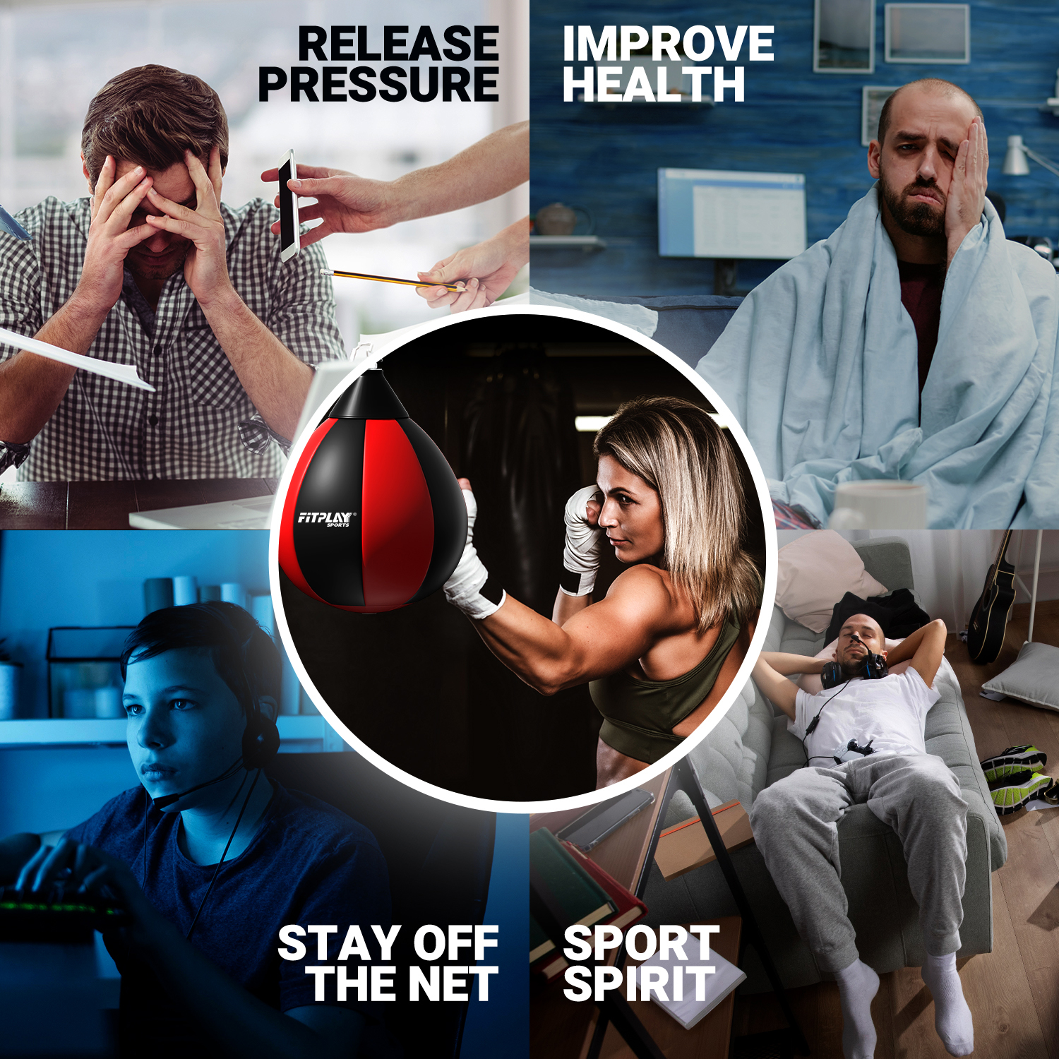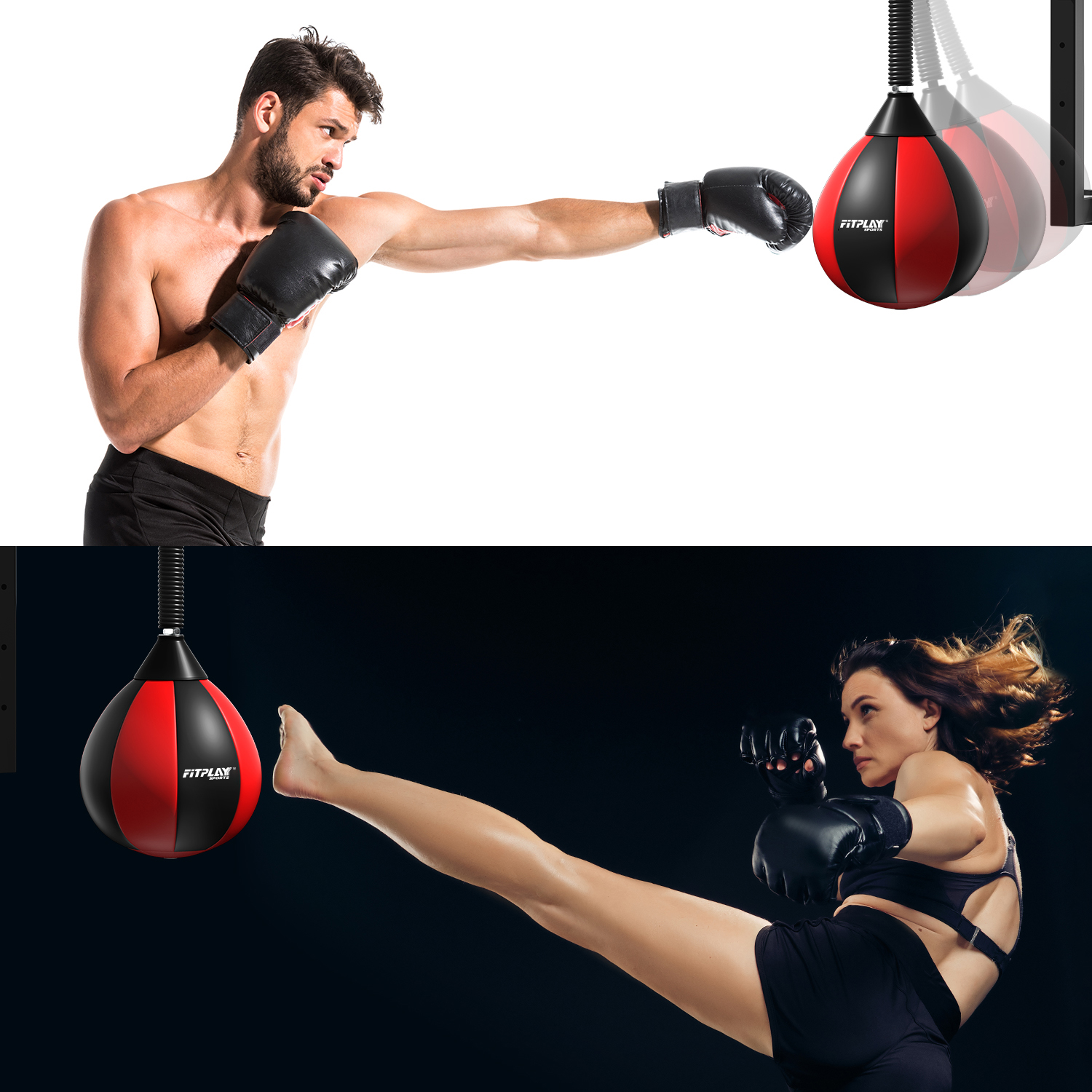 Durable PU leather speed bag with height-adjustable metal bracket.