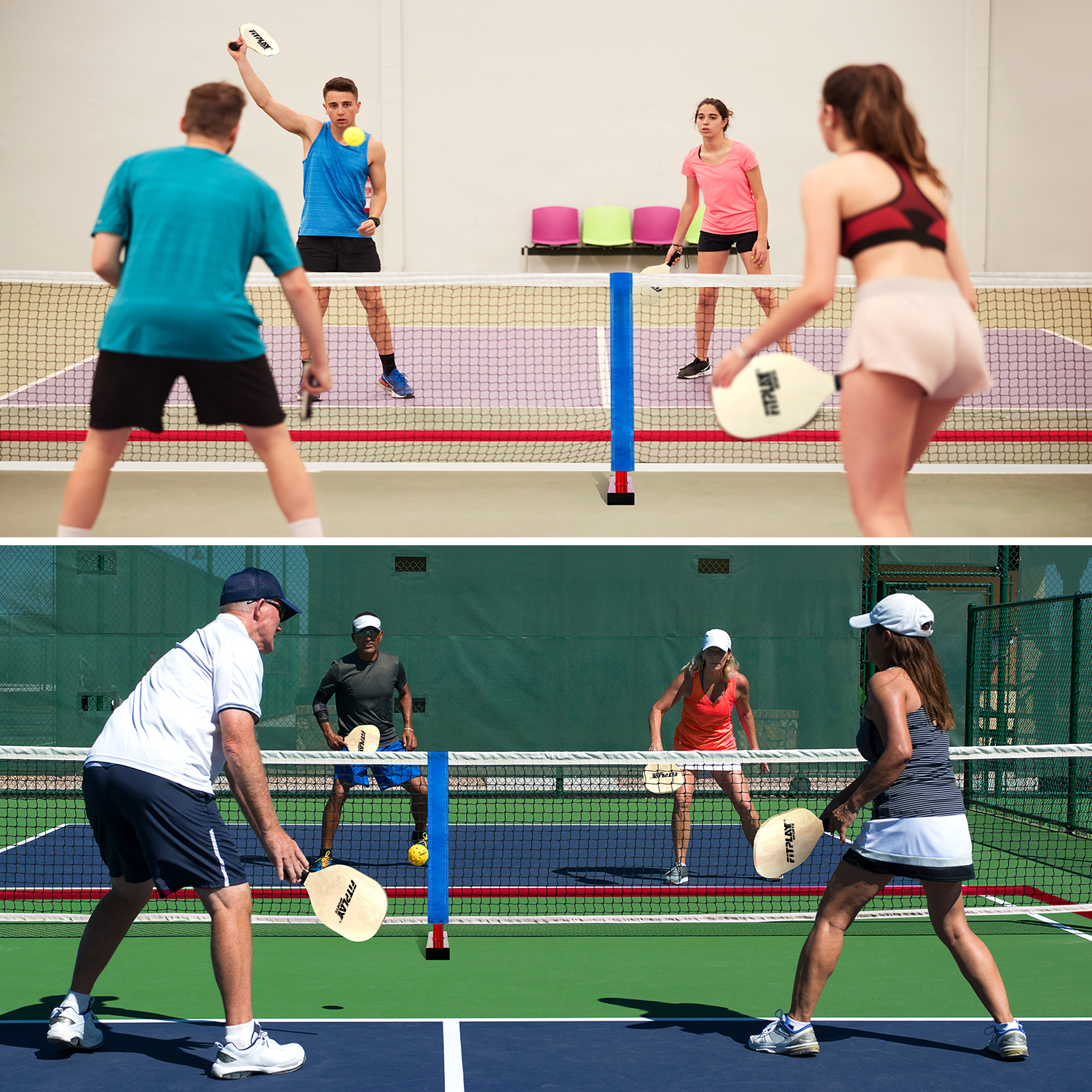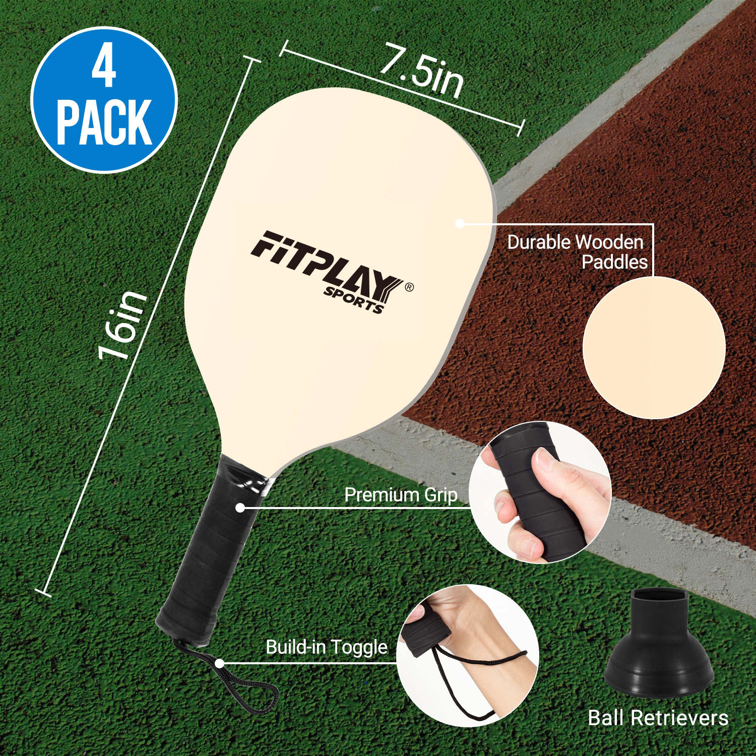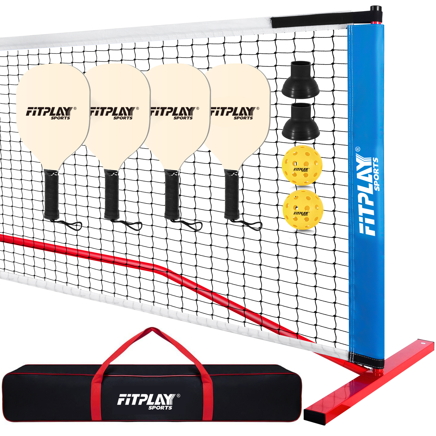 Complete USAPA-standard set with net, 4 paddles, 2 balls, ball retrievers, and waterproof bag