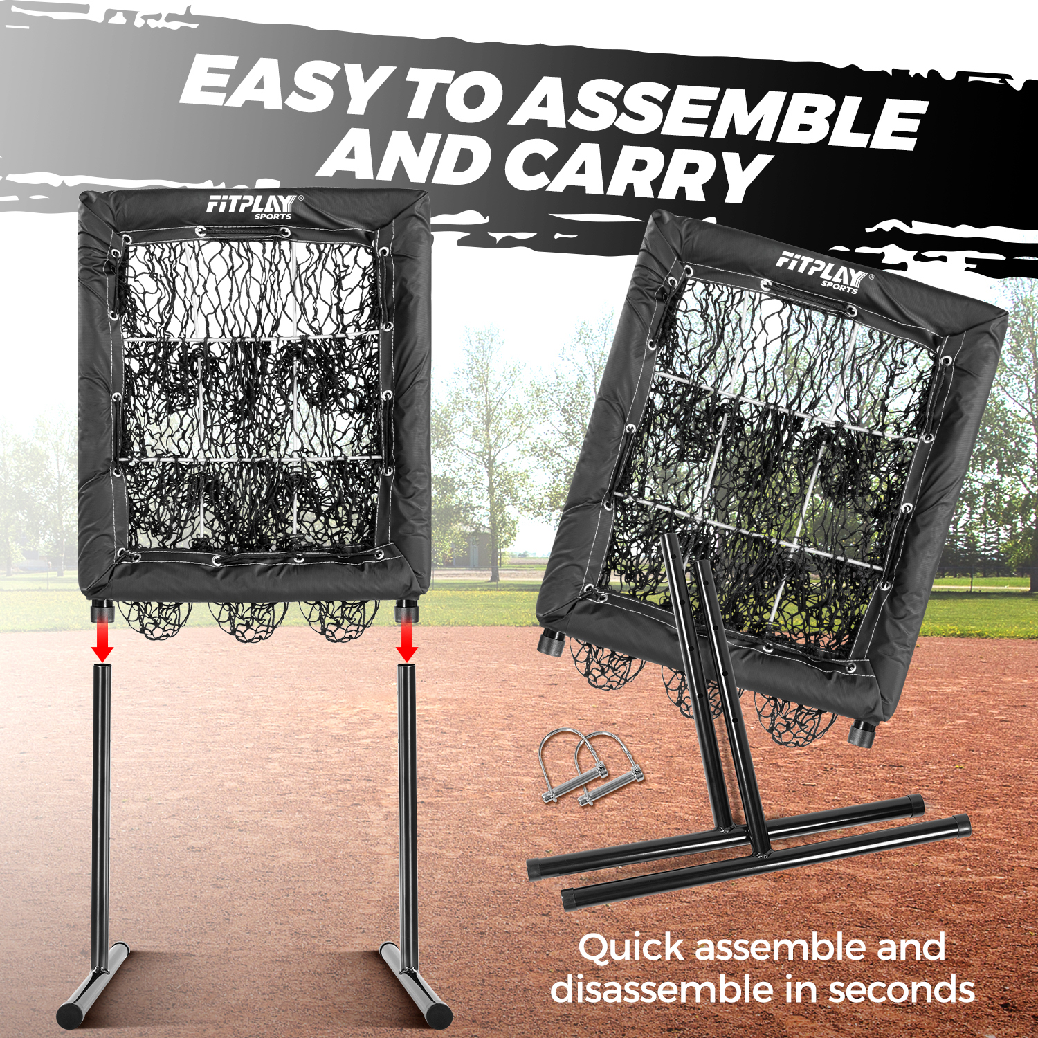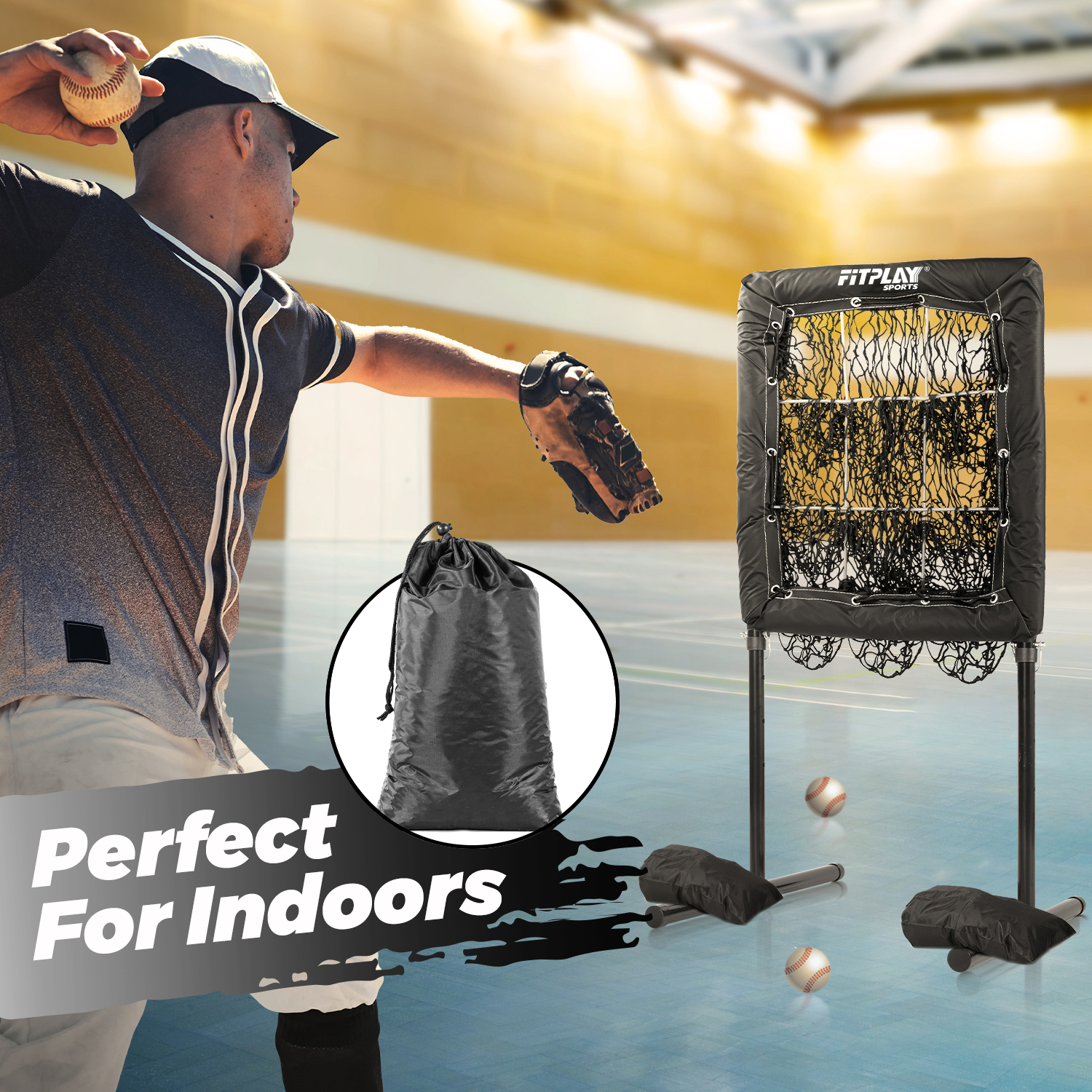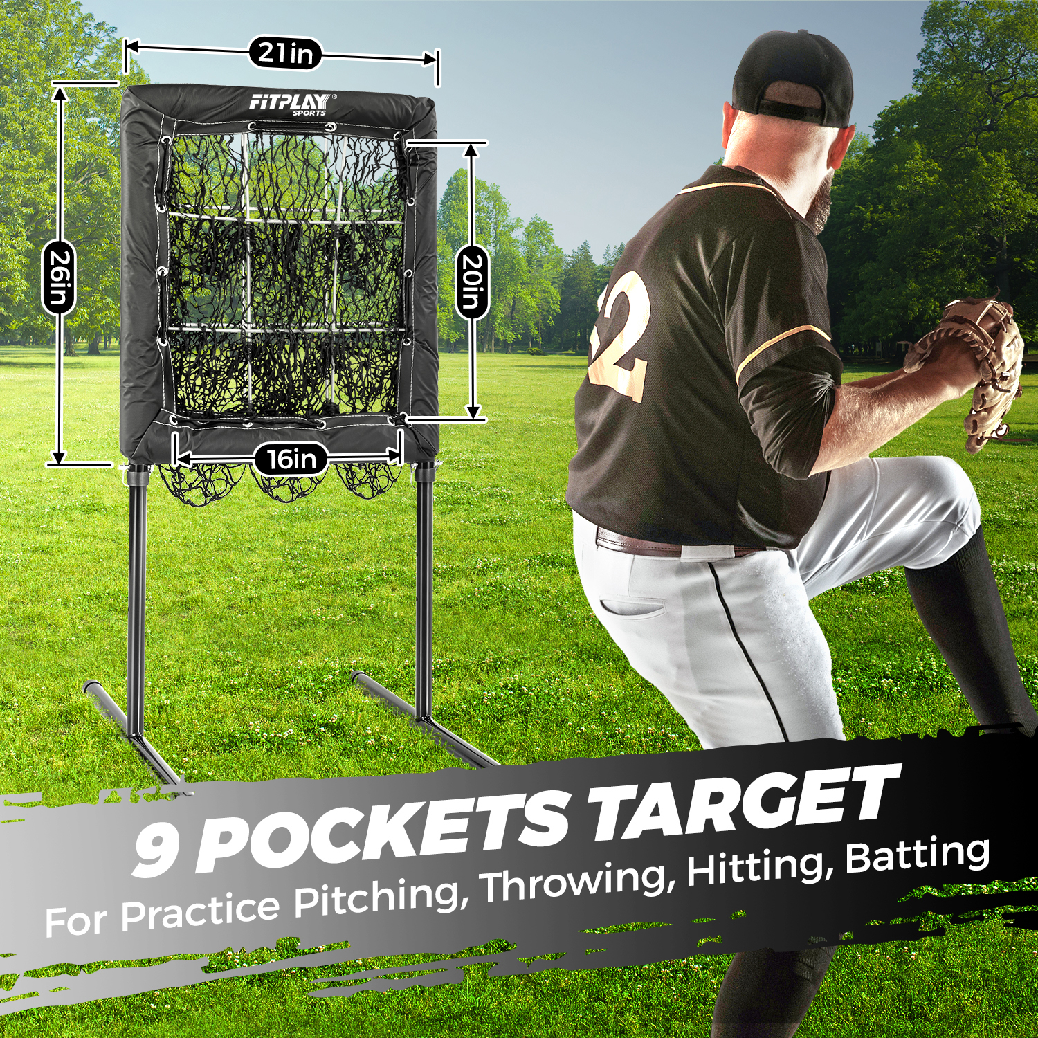 9-pocket net (26" × 21") simulates real strike zone for accuracy and pitching drills