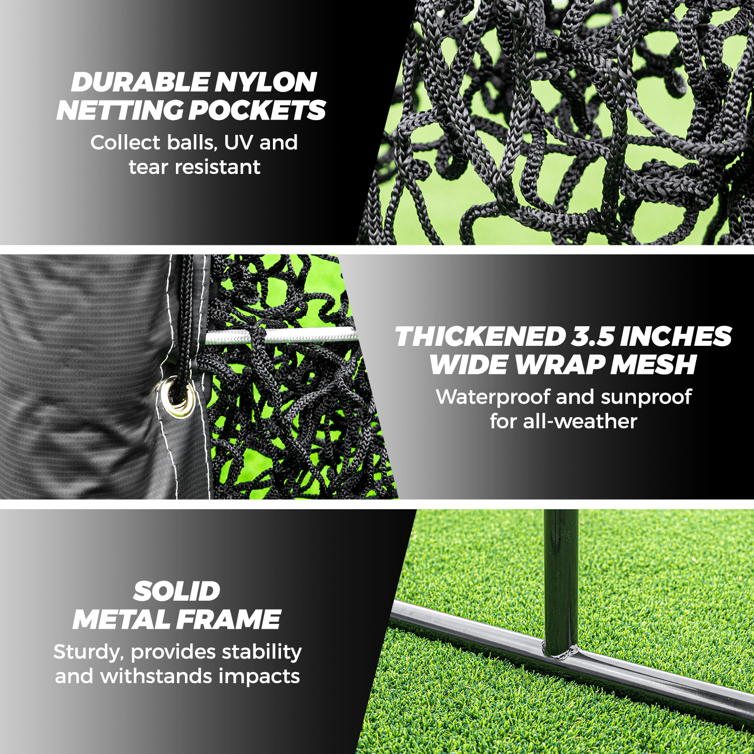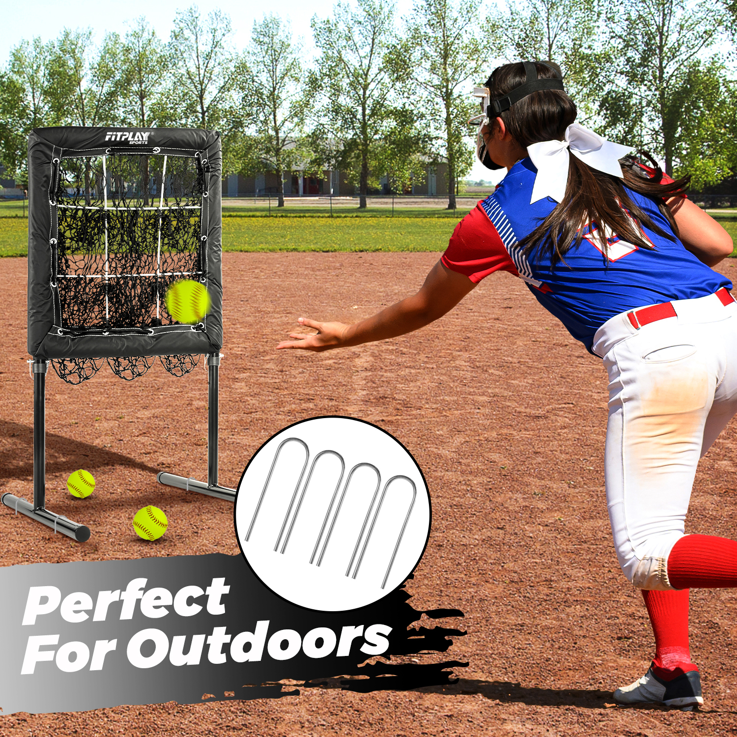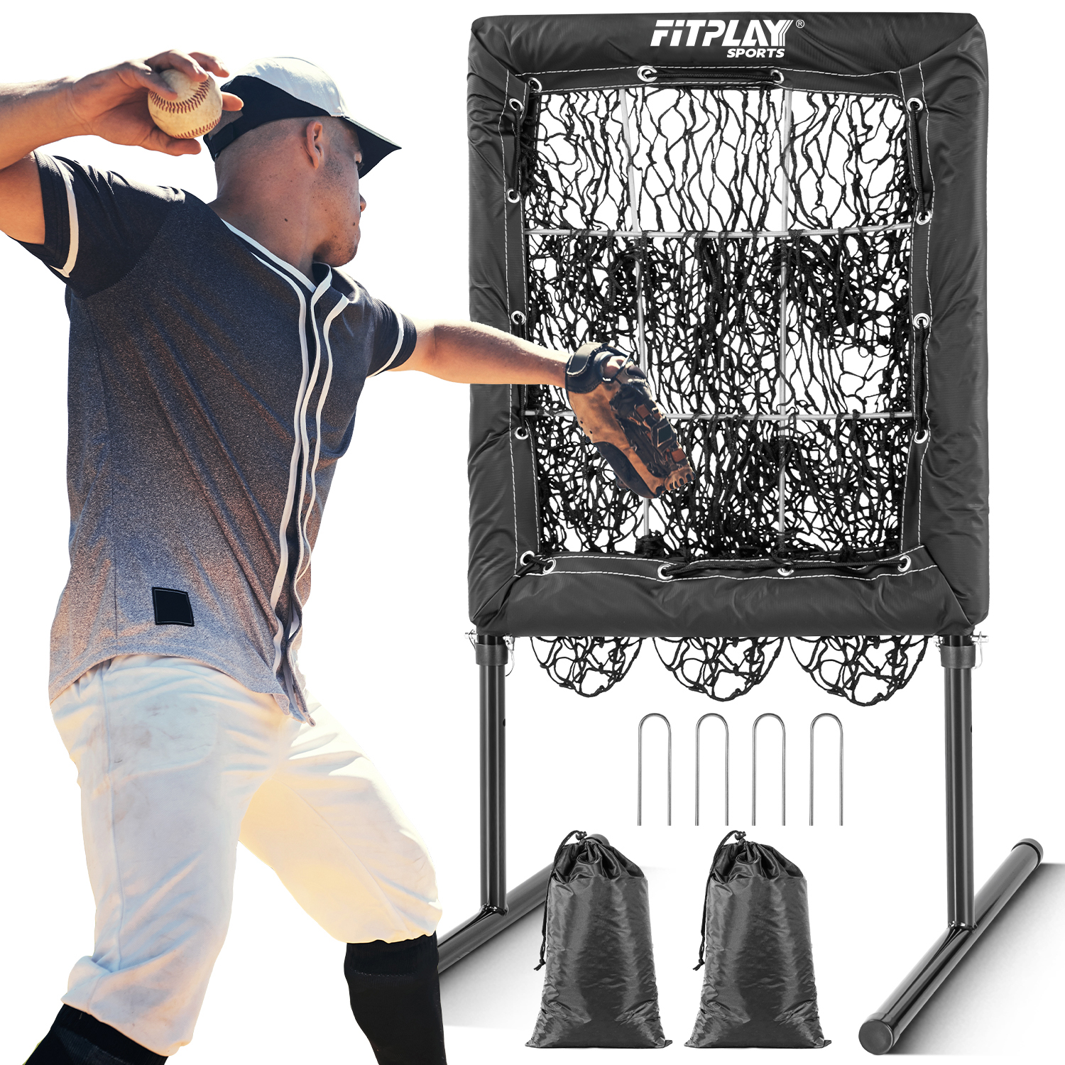 9-pocket net (26" × 21") simulates real strike zone for accuracy and pitching drills