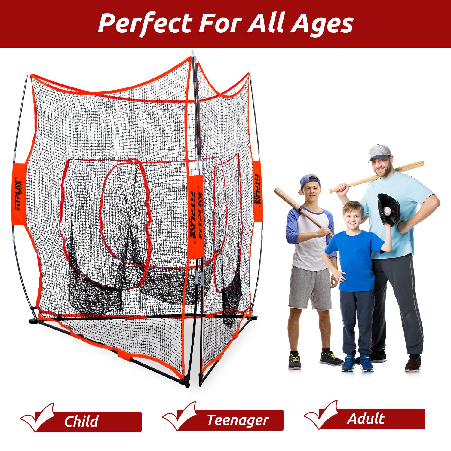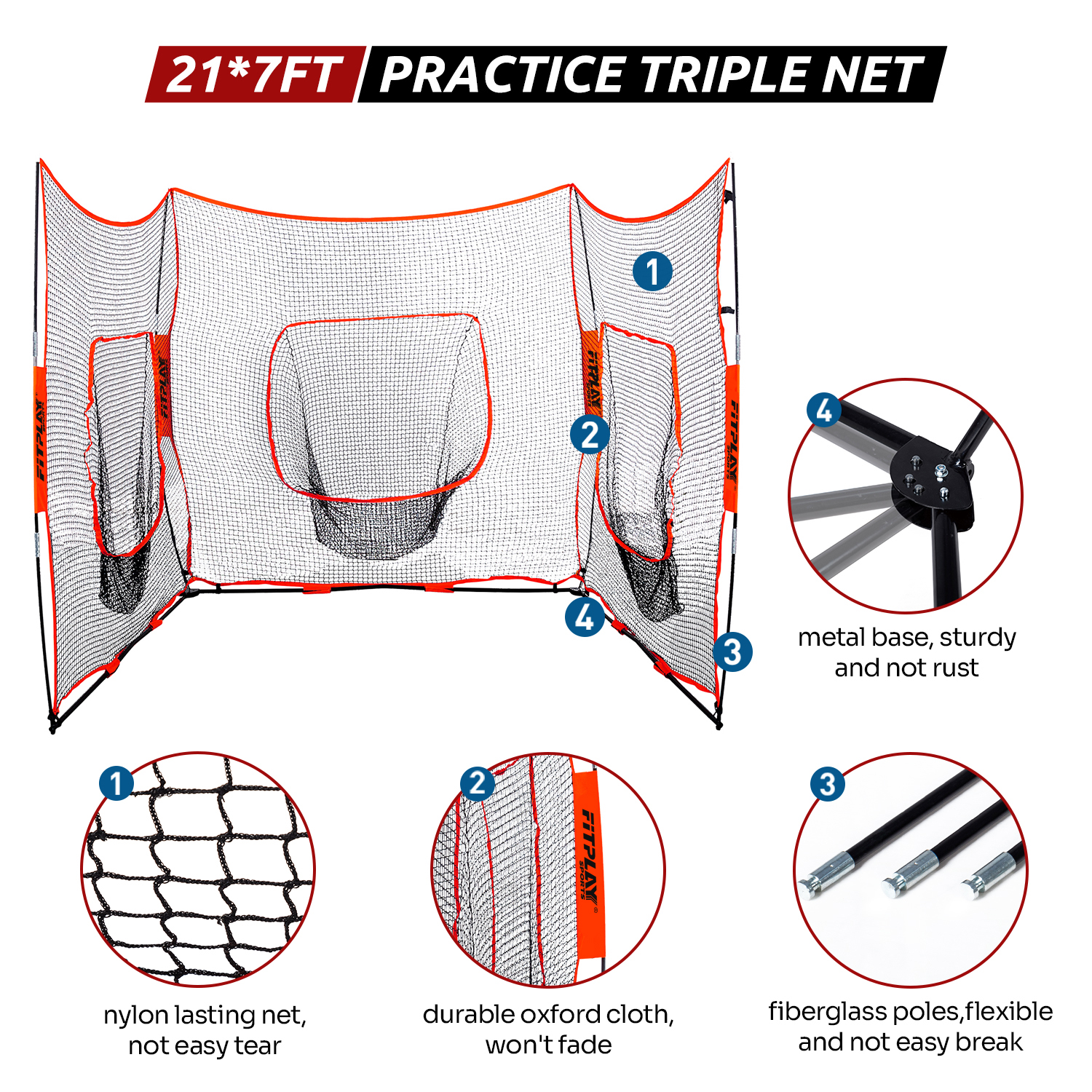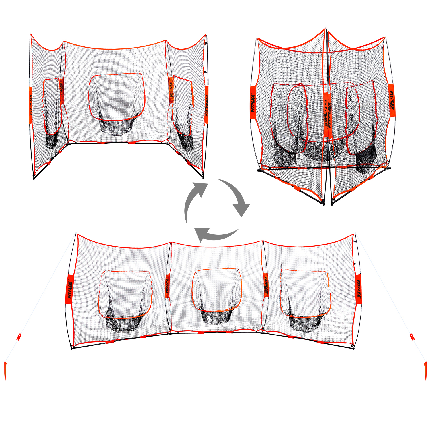 3-in-1 design: solo practice net, triple team practice net, and barrier net (21’x7’).