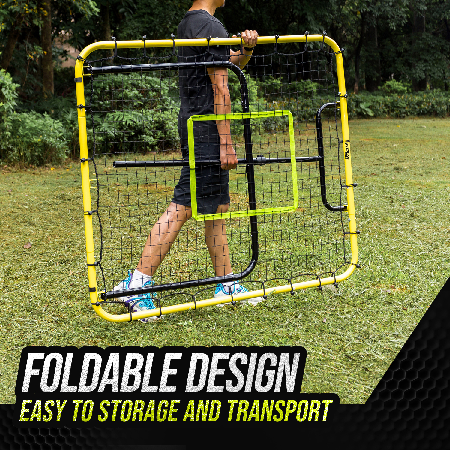 Built-in target zone improves reaction speed and throwing accuracy, folds for easy transport