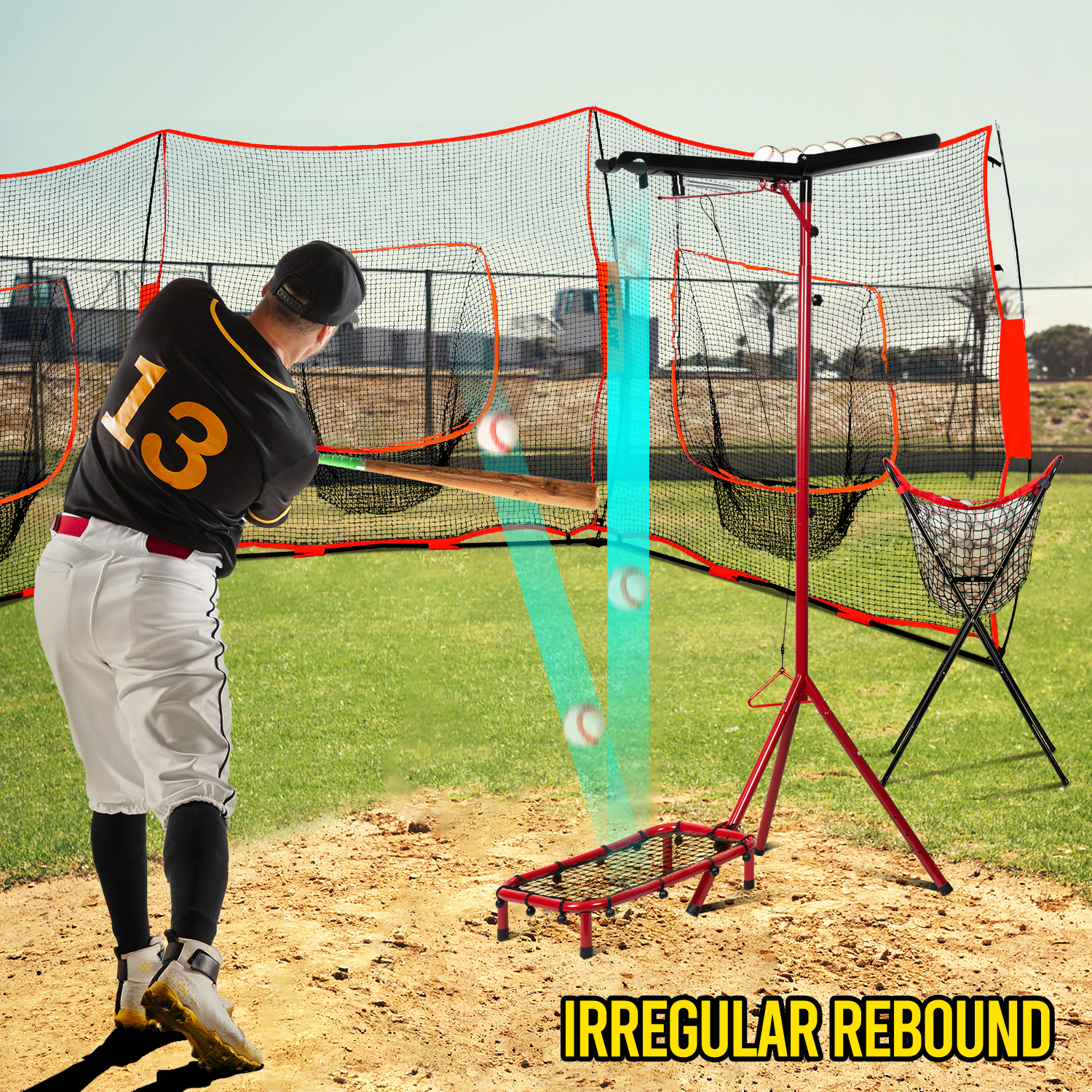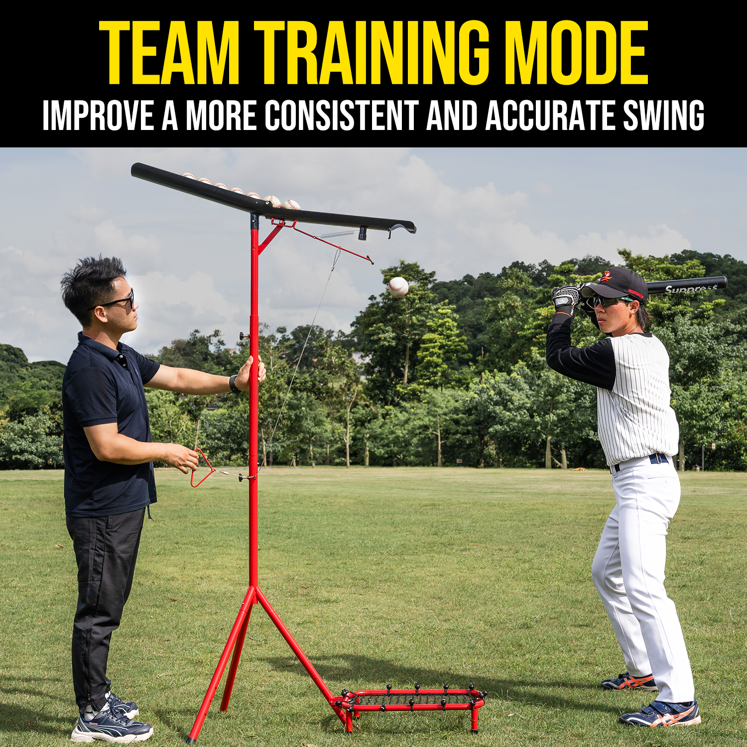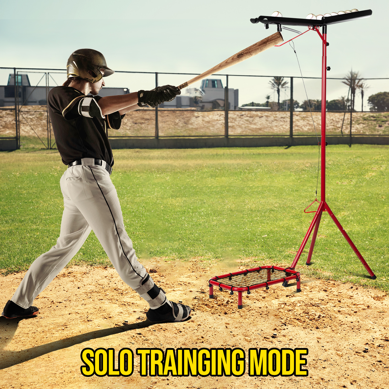 Supports multiple training modes: gravity drop, tee sim, and soft toss sim