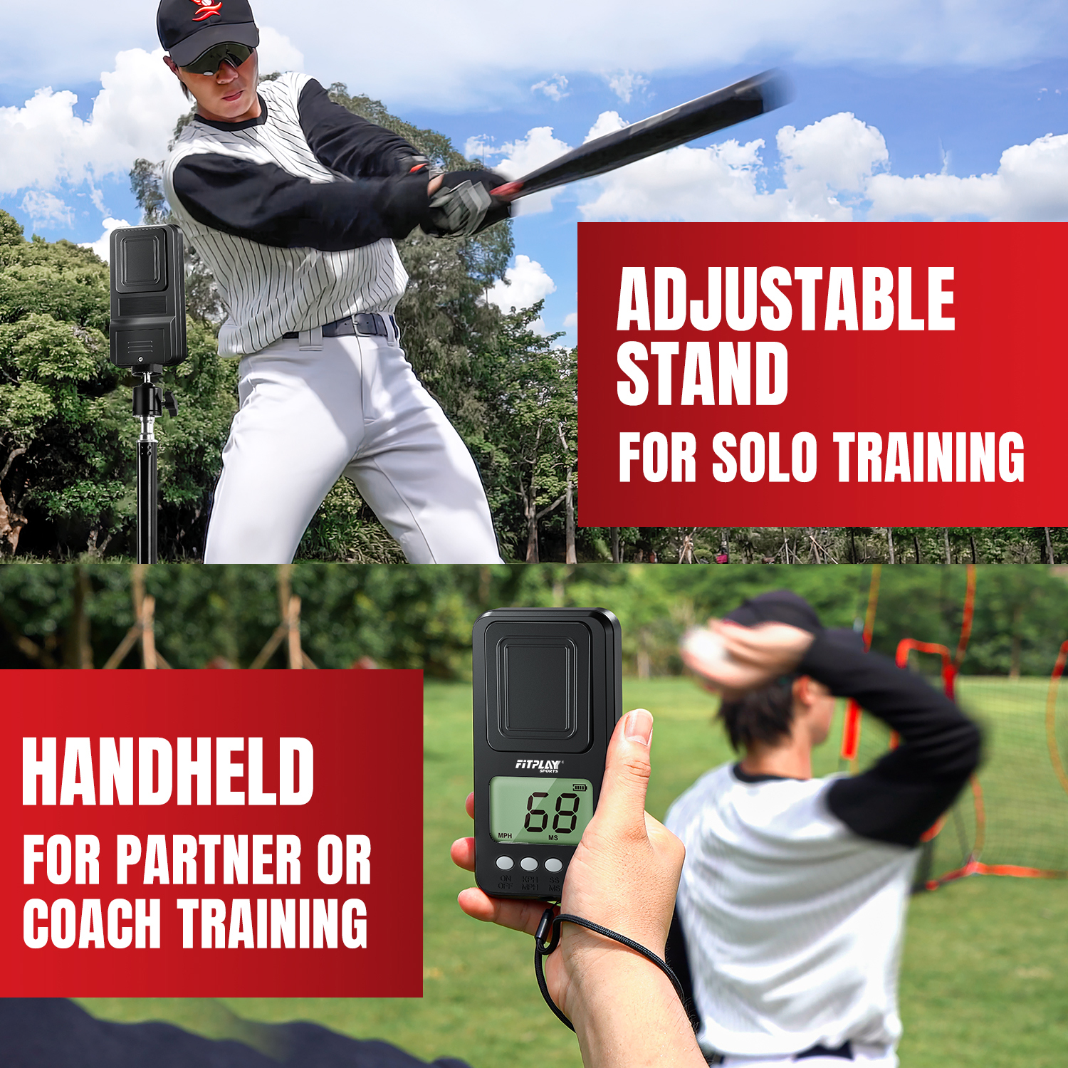 Hands-free tripod setup or handheld use for baseball and softball training at all levels