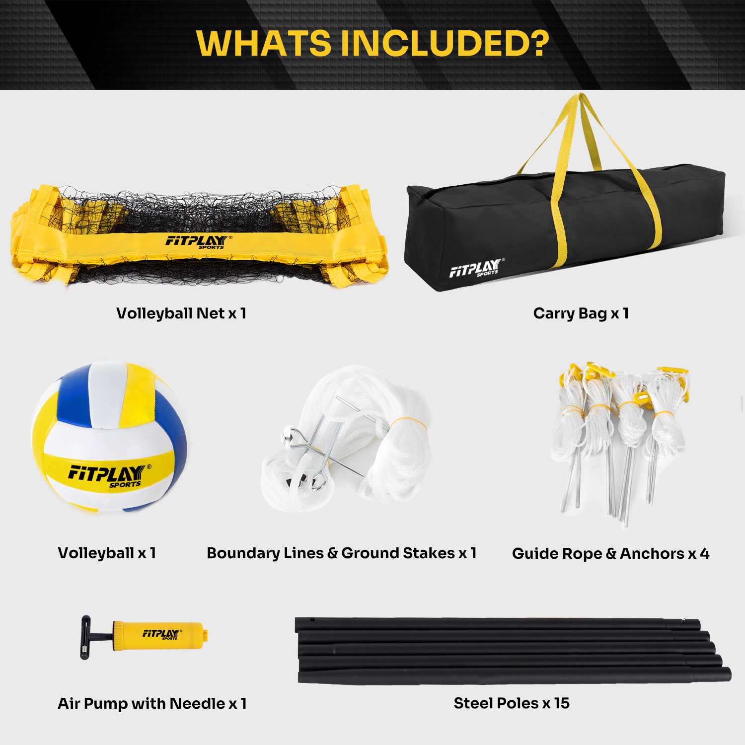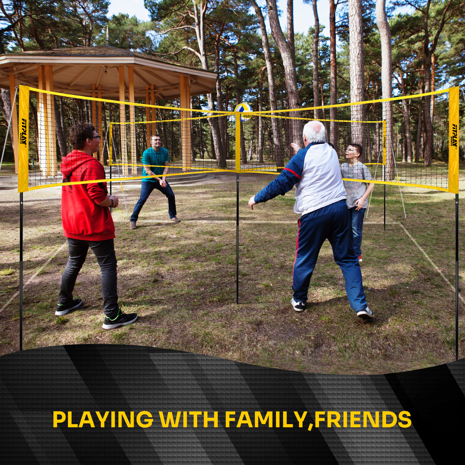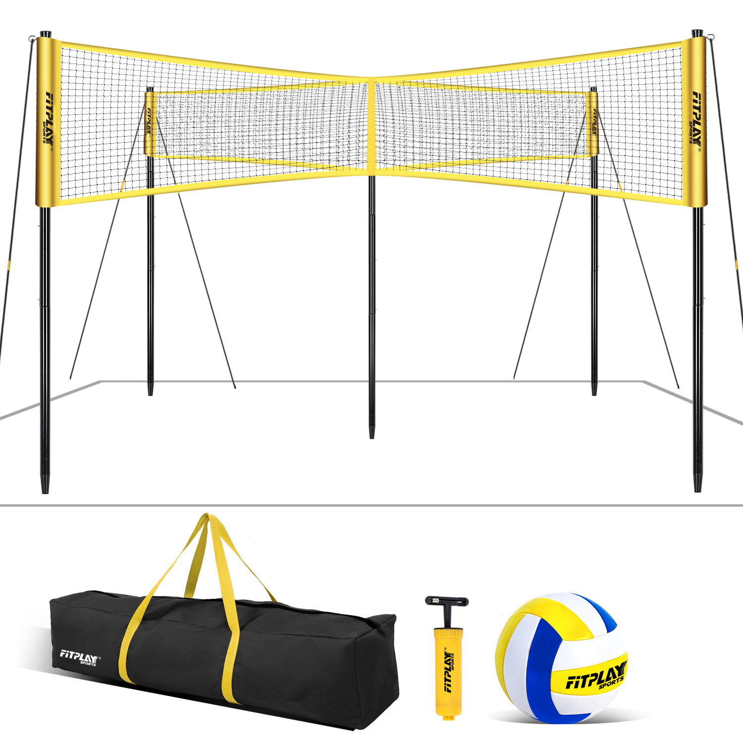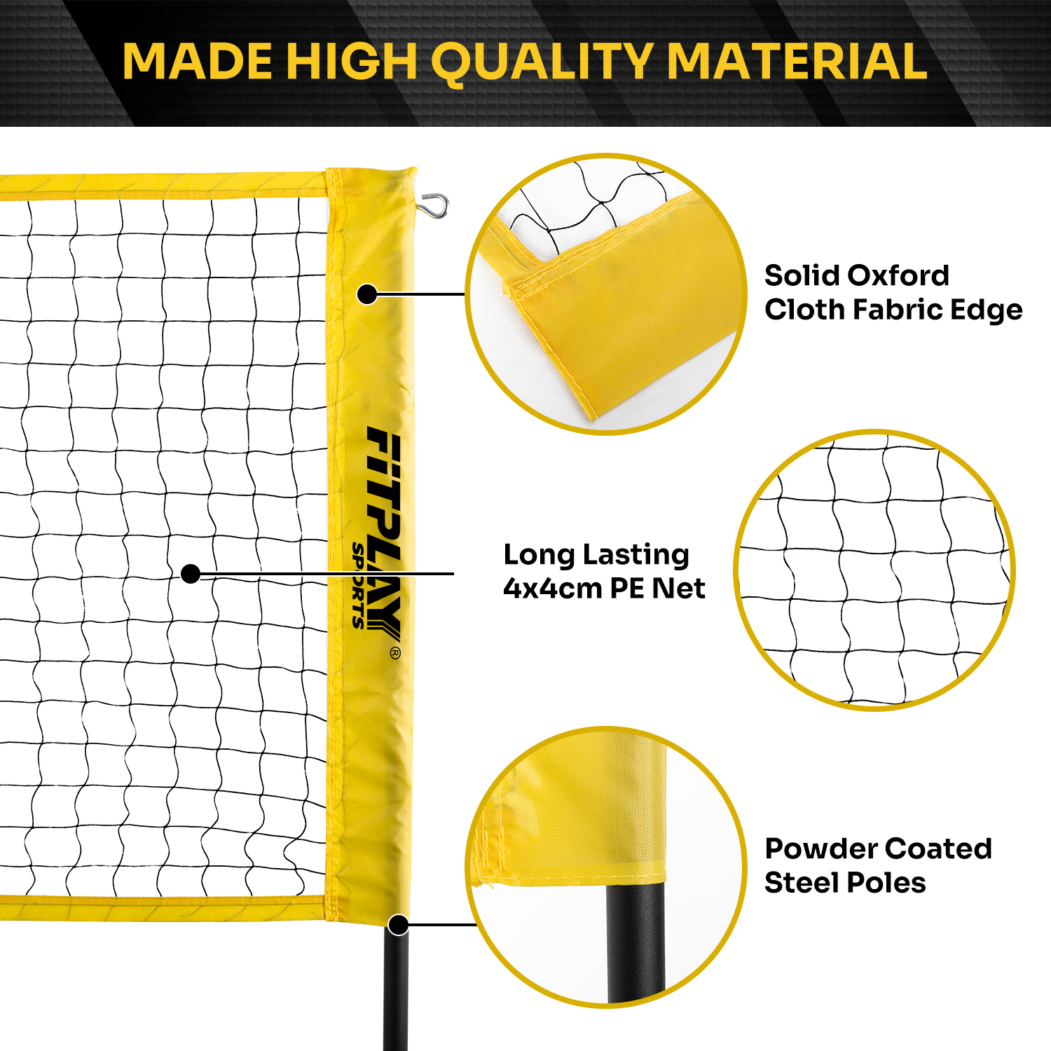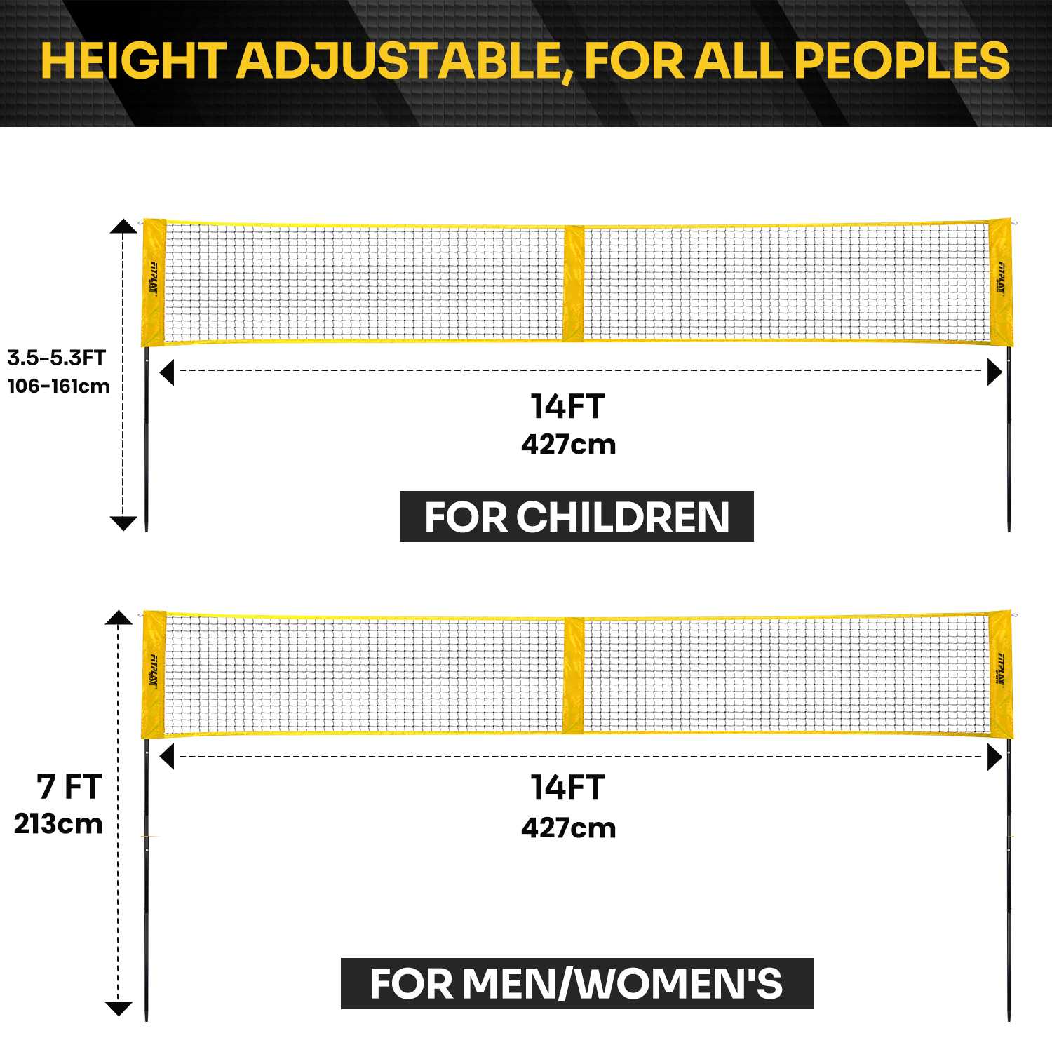 Adjustable height: 7' for volleyball and 5'1" for badminton with press-lock poles