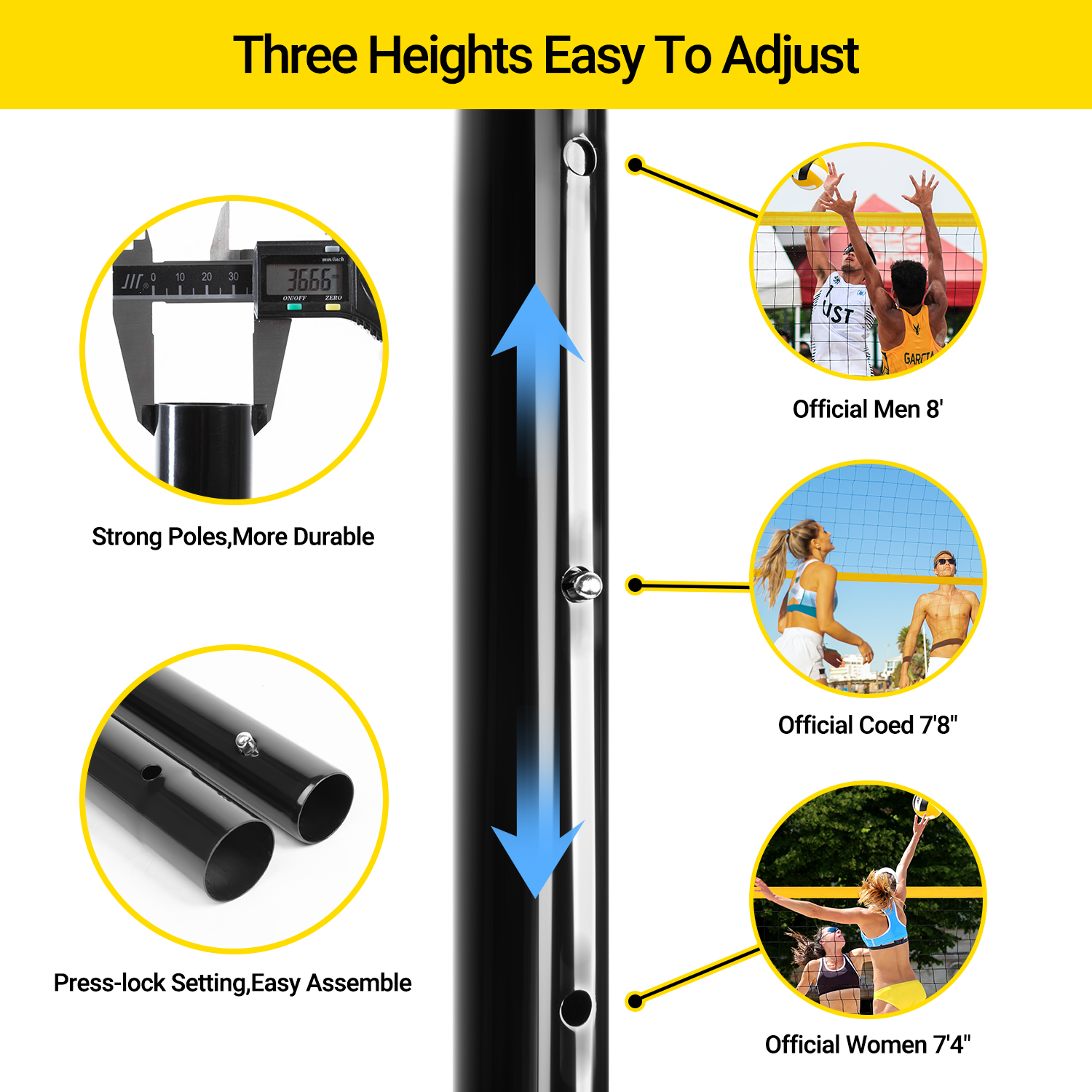 Adjustable heights (7'4", 7'8", 8') for all levels with waterproof portable design