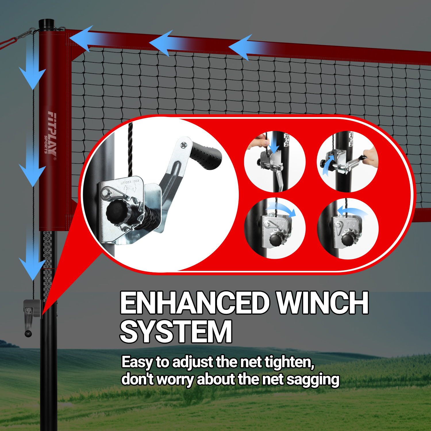 Durable 2" powder-coated aluminum poles with anti-slip winch for easy net tension adjustment.