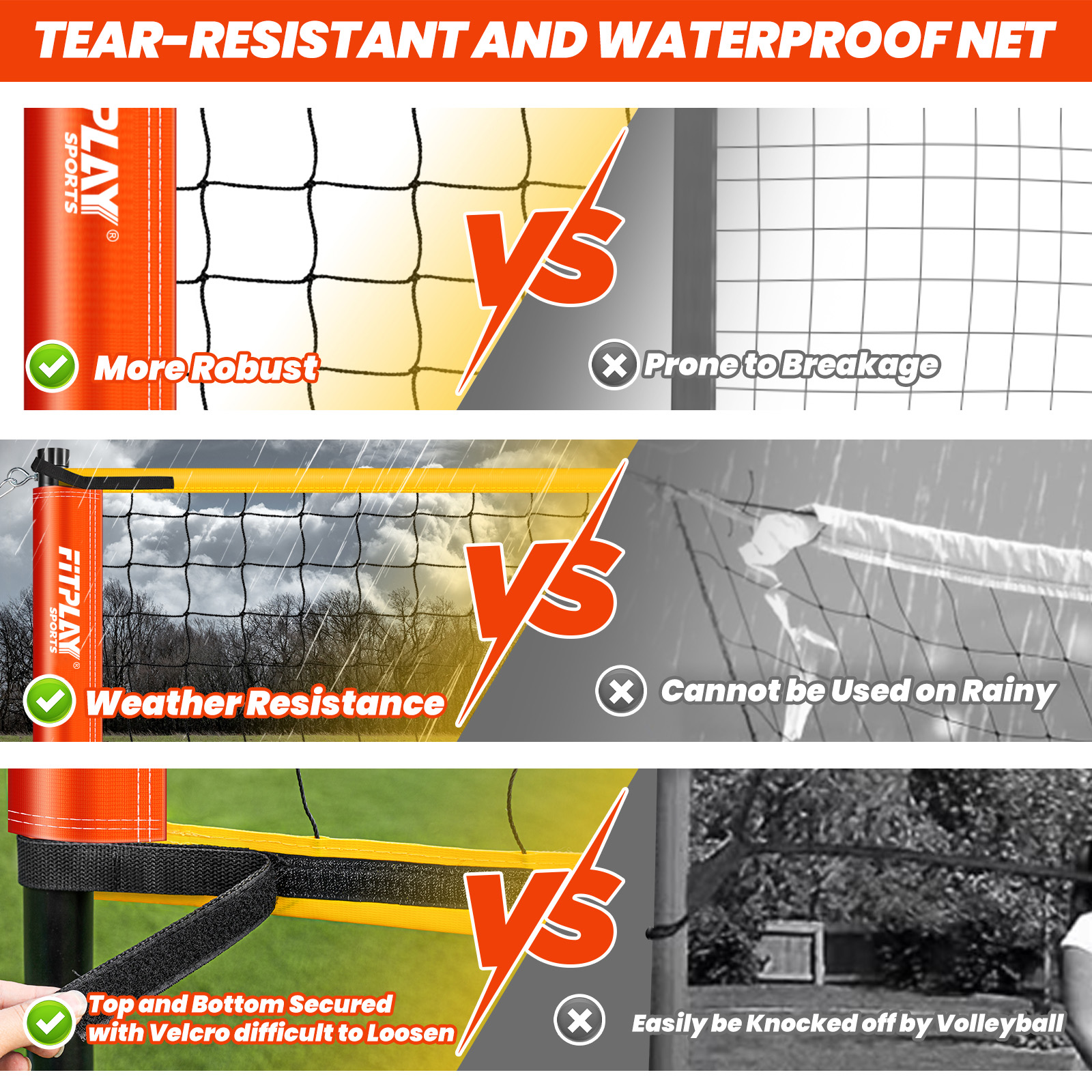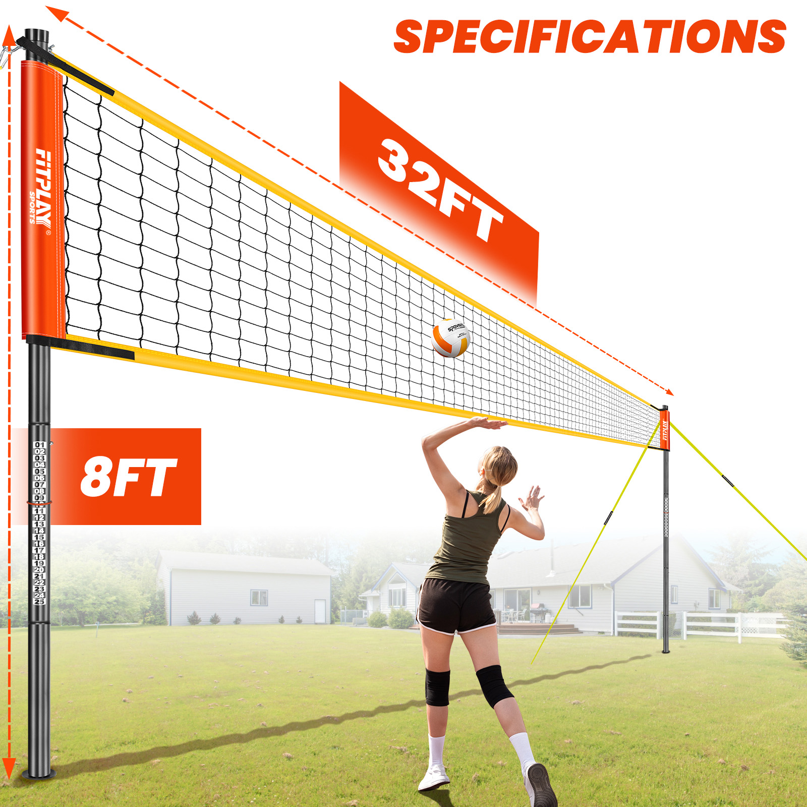 All-weather 32×8 ft net with full set and carry bag for easy transport.