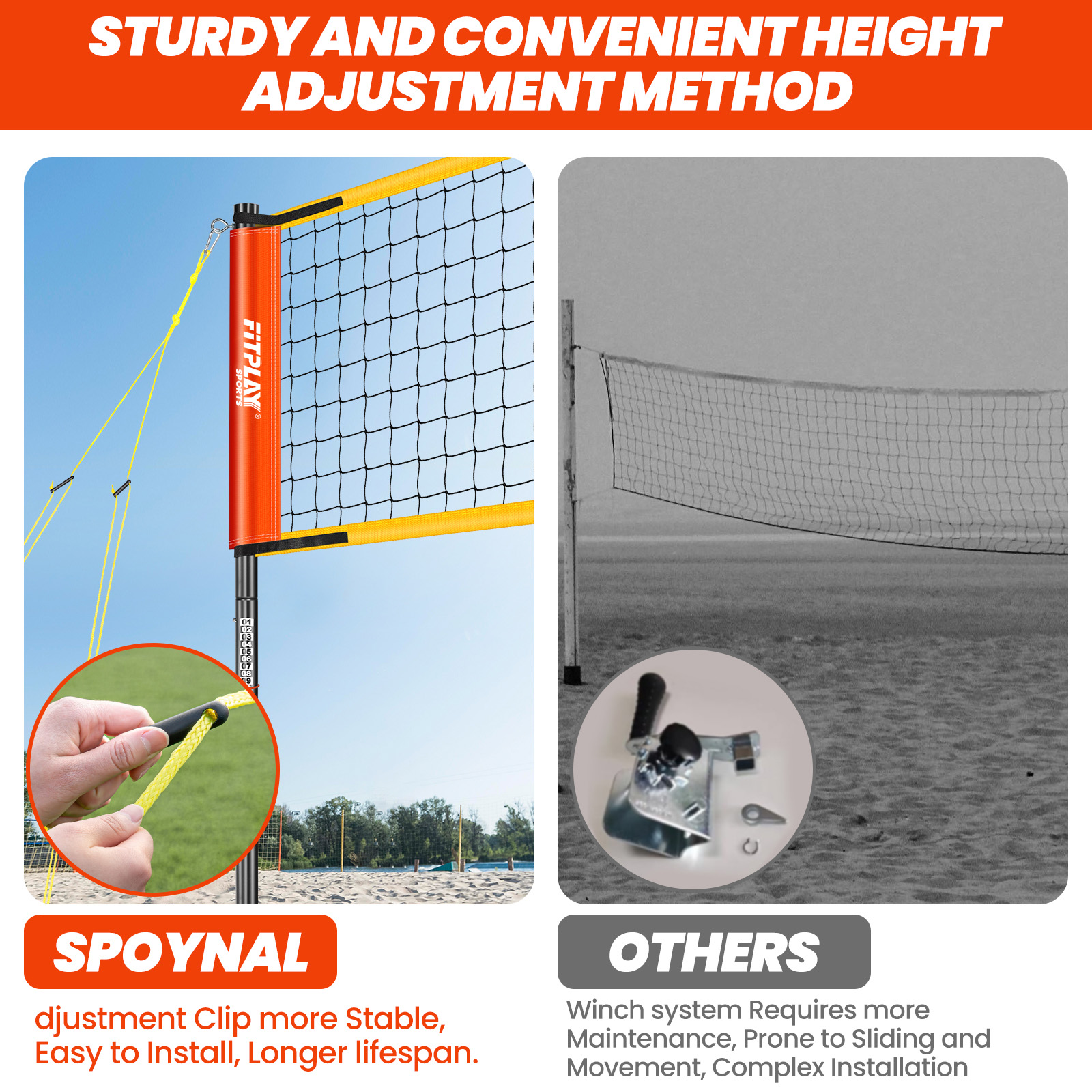 Anti-sag design with thick steel poles and ground spikes for stability.